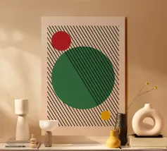 "Three colours in shapes. Two intentions. One point of balance."