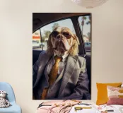 Absurd compositions featuring human dogs. Human dogs who, like us, live in Paris, Los Angeles or London and who, like us, are passionate about fashion, cars or nothing at all. Dogs that are disillusioned, amused or loved. Some are hippies, others have tattoos. In short, dogs who are just like us. Or are we like them? Dive into the artistic world of Dogland, an exclusive collection dedicated to all those who consider their dog to be a member of the family. Here, each dog poster is a work of art thought up with humour, tenderness or elegance. Whether you're a fan of bulldogs, dachshunds or corgis, you'll find the wall poster that will make your home bark with happiness. Add a canine touch to your walls with original illustrations, printed on quality paper, ready to sublimate your interior. Dogland is more than a shop: it's a declaration of love for dogs.
