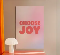 The Joy poster captures the simple beauty of a word that brings light. Its warm gradation of soft pinks and shades of orange evokes the softness of a sunrise and the soothing energy of pure joy. Sleek and harmonious, this design is an invitation to cultivate everyday gratitude, serenity and inner joy. Perfect for a minimalist interior, a meditation space, an inspiring office or a poetic bedroom.