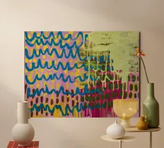 Pieces by Colombian-British artist Gabriel Tobón Moreno are often characterised by his use of clearly defined colours. His abstract acrylic paintings possess a unique power, ranging from portraits with distinctive facial expressions, to calm, minimalist landscapes, right through to passionate artworks with titles such as ‘Conflict and Peace’ or ‘Opinion Matters’. These diverse, powerful designs make a particular impact as poster prints or gallery prints, for a touch of modern wall decor.