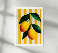 Brighten up your space with this vibrant 40x60 cm poster featuring a stylized lemon tree branch in a modern, minimalist design. Inspired by nature and rendered in a bold, flat illustration style, this citrus-themed artwork combines graphic elegance with a refreshing pop of color. Perfect for kitchens, dining rooms, or anyone who loves fresh, fruity vibes in their decor