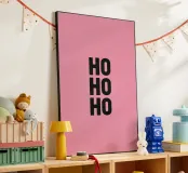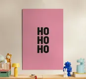 Add a touch of modern flair to your holiday decor with this minimalist 'Ho Ho Ho' poster. Featuring bold black typography on a solid pink background, this artwork is perfect for creating a festive and stylish atmosphere in your home. Ideal as a centerpiece for Christmas celebrations, this unique design combines retro charm with contemporary aesthetics. Perfect for art lovers, holiday enthusiasts, and anyone looking to enhance their space with vibrant seasonal decor. Frame it to elevate your festive setup!