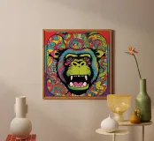 With "Monkey Circus" you will experience a pop art work. Colourfully patterned, an exciting circus in which the monkey takes centre stage. Discover a new piece of the monkey every day that will amuse you.