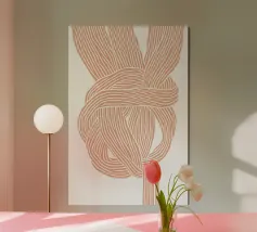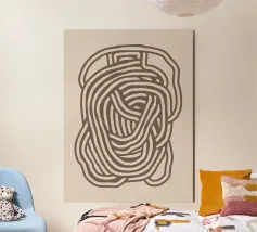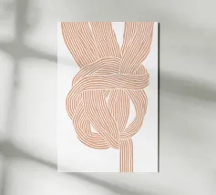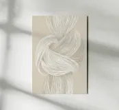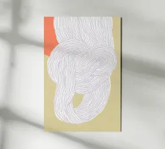 This modern, abstract illustration shows a large knot and twist in light beige and white-cream colours, inspired by Scandinavian boho style. The harmonious colour areas and lines create a childlike, playful pattern that celebrates the beauty of nature.