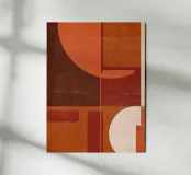 Retro-inspired art with overlapping forms in earthy orange and brown. The design has a timeless quality that fits beautifully in mid-century interiors, Scandinavian homes, or eclectic spaces with a nostalgic twist.