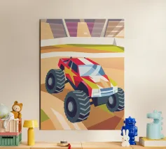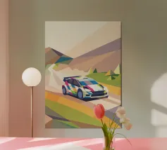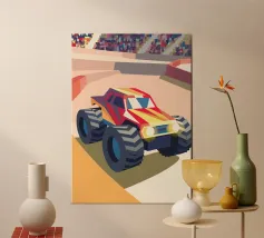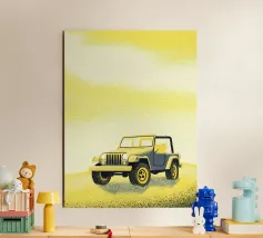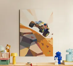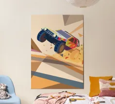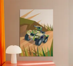 Get an illustration of an off-road vehicle on a dirt road with a modern geometric style.