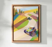 Get an illustration of off-road vehicles on mountain roads with a modern geometric style.