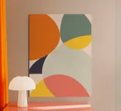 Introduce a sense of calm sophistication with "Organic Intersections," a beautiful abstract art print that captures the essence of Mid-Century Modern design. This illustration features overlapping, soft-edged geometric shapes in a carefully curated palette, including a warm orange, dusty teal, soft yellow, blush pink, and a grounding navy blue accent. The composition emphasizes balance and harmony, making it a perfect piece for contemporary and minimalist interiors. Ideal for adding a pop of muted color and retro flair to a living room, gallery wall, or modern office space.