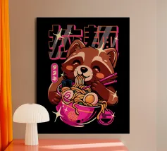 A cute and cuddly panda bear enjoying a delicious bowl of ramen. This playful design is perfect for food lovers and animal enthusiasts alike.