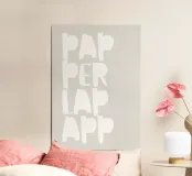 Playful typography in soft white areas on a grey-beige background - minimalist, charming and with a wink. This artwork brings lightness and humour to any room and shows that design can also be fun. A statement piece for anyone who loves clear shapes and a pinch of irony.