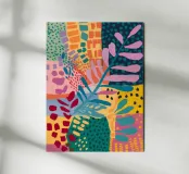 A fusion of geometric fields and botanical sketches creates a quilt-like jungle of wild serenity.