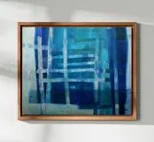 A picture with calm blue tones, clearly structured and elaborated with details. The original picture is painted with acrylic paints on canvas. The motif is very well suited for living rooms and offices.