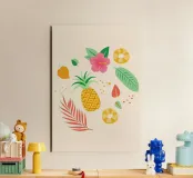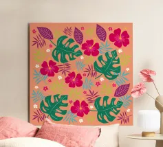 pineapple leaves flowers slice tropical hibiscus mango patterns petals stems greenery fruits floral orange yellow botanical nature exotic foliage pink