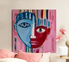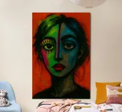 Vibrant orange, yellow and azure merge in fractured planes across a poised visage, as if light itself were sculpting the features anew. Every brushstroke pulses with electric life, balancing precise anatomy with riotous chromatic abstraction. The portrait exudes confidence and curiosity, challenging viewers to perceive beauty beyond predictable palettes. Printed in archival quality on thick matte paper, it offers a bold focal point for creative studios, hallways or contemporary lounges, reminding all who see it that art can refract reality into dazzling new spectrums.