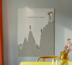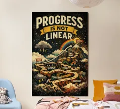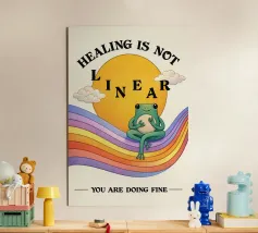 A gentle reminder that healing is not a straight line. This illustrated artwork captures the ups and downs of personal growth — setbacks, acceptance, resilience, and self-compassion. Perfect for therapy spaces, bedrooms, or creative studios, this piece inspires hope and strength through every twist of the journey.