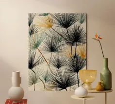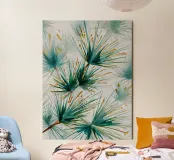 A dynamic composition of pine needle clusters painted in fluid washes of teal, jade, and golden ochre. This expressive botanical artwork captures the energy and rhythm of nature’s design, merging natural form with a bold, graphic sensibility. Ideal for wall art, textiles, or creative branding projects.
