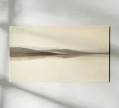 A soft, abstract landscape features a muted color palette with gentle transitions between light and dark shades. A large, white cloud hovers above a dark hill, creating a sense of calm and tranquility.