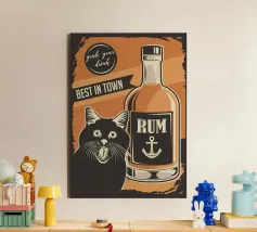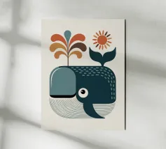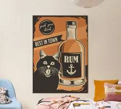 Mid century illustration of a bottle of Rum, complete with whale :)