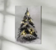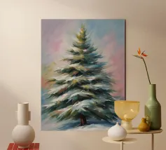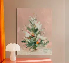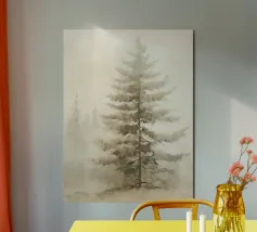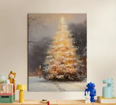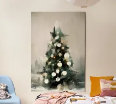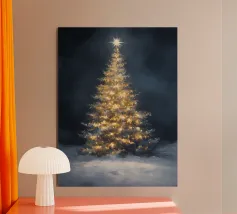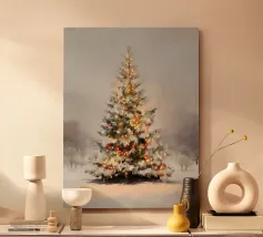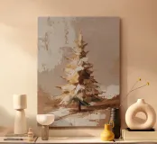 Minimalist Christmas tree wall art in beige and gold palette. Elegant modern holiday decor for cozy neutral homes.