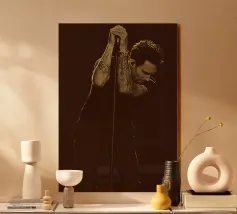 Wrapped in darkness and quiet strings, Dylan stands as a whispering shadow of song.