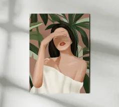 Illustration of a woman on the beach in beige tones