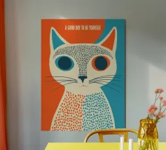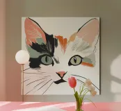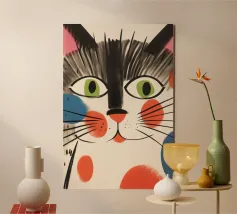 Stylish illustration of a clever cat's face, ideal for printing on products like apparel, tote bags, mugs, and more, add sophistication and charm to your items with this pretty feline design!