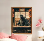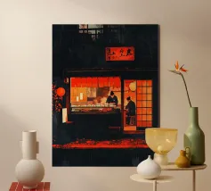 The "Snacktime" design shows a charming monster dining in a classic Japanese izakaya in a suburban neighbourhood. With watercolour elements and inspired by ukiyo-e, it's a humorous look at Japanese culture - perfect for fans of creative and unique art!