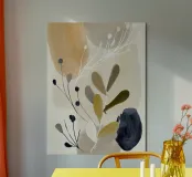 A gentle arrangement of botanical shapes in earthy neutrals, charcoal, and soft gold. This composition balances organic delicacy with modern simplicity, perfect for elevating calm, curated interiors with its understated charm.