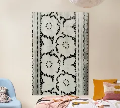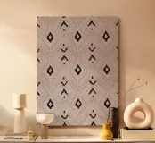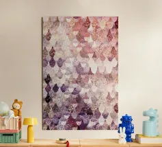 This elegant, oriental woven illustration combines modern and vintage elements with symmetrical diamond patterns in soft pastel and cream colours, perfect for a boho style.