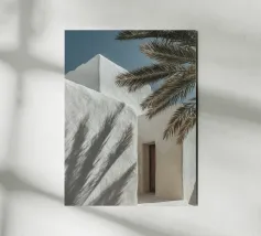 Escape to a bohemian paradise with this stunning photograph of a white outdoor shower on a sunlit rooftop in Marrakech. The minimalist design, with its clean lines and natural textures, perfectly blends with the warm Moroccan sun, creating a tranquil oasis high above the city. Surrounded by white walls and terracotta tiles and a gentle breeze, this serene space evokes a sense of freedom and relaxation. Ideal for infusing your home with the laid-back elegance of Moroccan style, this image captures the beauty of outdoor living and the spirit of Marrakech’s timeless charm.