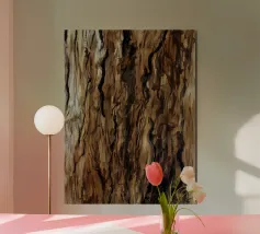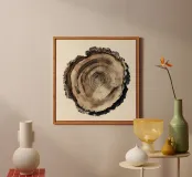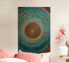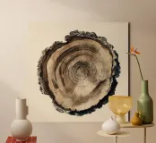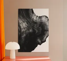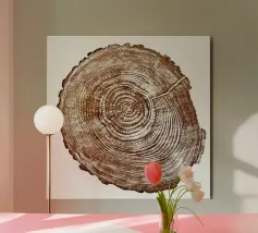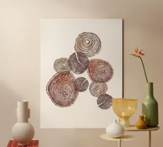 A minimalist yet intricate watercolor rendering of a tree cross-section, capturing the quiet strength and passage of time within each ring. This organic, earthy piece is perfect for modern nature-inspired interiors, cabins, or anyone drawn to the beauty of raw natural forms.