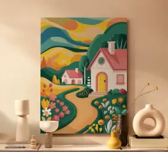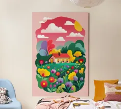 Treechild, whose real name is Nina, is an independent artist who lives with her family in Hesse. Born in Berlin, she lived in Bavaria, Switzerland and Holland for several years before moving back to Germany in 2025. Inspired by her father, a well-known Berlin painter, and her mother, a talented decorator, she grew up in a world of creativity and design. Visits to museums and exhibitions shaped her love of art from an early age. As a self-taught artist, Nina learnt drawing and photography herself. Her unique style has attracted clients such as Tchibo, Mercedes, Otto and Ikea. Treechild's work is sold worldwide - including in Dubai, India, Australia and Europe - and has been featured in magazines and on Dutch and US interior design TV shows. Working mainly digitally, Nina experiments with different styles to keep her art fresh and innovative. Her works, characterised by vibrant colours, bold perspectives and thoughtful details, reflect her passion for diversity and modern aesthetics. She is supported by her husband Florian, who manages Treechild behind the scenes.