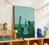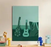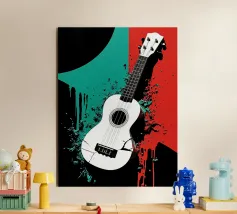 A unique and captivating artistic style. Two guitars depicted in beautiful detail,