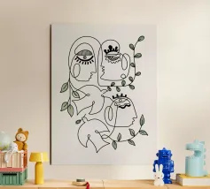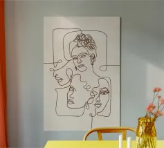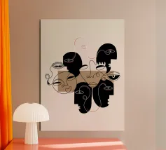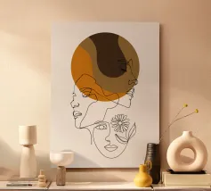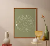"Universal Self" is a captivating olive green line art piece that features interconnected faces arranged in a circular form, symbolizing unity and the collective human experience. The circle is complemented by the sun and moon, representing balance, time, and the eternal cycle of life. The minimalist design, combined with the harmonious blend of celestial elements, creates a sense of universality and oneness, making this artwork both thought-provoking and visually compelling.