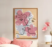 "Us" is a romantic artwork featuring a couple, set against a soft floral pink background. The delicate line art captures the intimacy and connection between the figures, while the pink floral backdrop adds a touch of warmth and love. This piece is perfect as a Valentine's Day gift or as a beautiful addition to a bedroom, symbolizing romance and affection