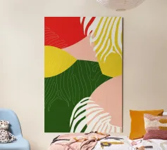 A pop art illustration featuring bold colors and organic shapes inspired by Henri Matisse. A playful and expressive piece with a modern touch.