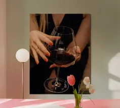 Painted wine glass with one hand. Generated with AI (Canva).