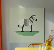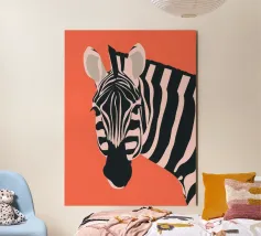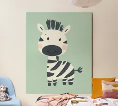 Bring a touch of adventure and nature into your home with this minimalist zebra poster. The stylised zebra, with clean lines and sharp contrasts, stands on a soft green meadow. The modern, Scandinavian aesthetic fits perfectly in children's rooms, playrooms or any modern living area. An ideal gift for children or nature lovers who adore timeless design.