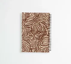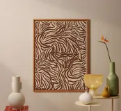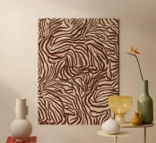 An abstract pattern resembling zebra stripes with irregular brown lines on a beige background. The design has an organic flow.
