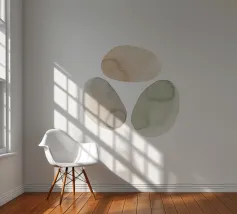 This minimalist watercolor pattern features softly scattered organic pebble shapes in warm beige and muted olive green tones. The hand-painted texture and airy white background create a calm, modern aesthetic inspired by nature and Scandinavian simplicity. Perfect for contemporary interiors, this design adds subtle character without visual clutter. Ideal for living rooms, bedrooms, offices, and stylish gallery walls seeking a balanced, natural look