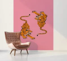 Tiger design, very bright colours that give your products more pep. Bright shades of red depict a tiger with dynamic, curved lines. The stylised depiction gives the illustration an almost mythical quality and immediately catches the eye. The contrasting colours, especially the bright red and pink, create a strong visual presence that radiates energy and vibrancy. This design is ideal for a variety of products such as beach towels, mobile phone covers or other accessories. The bold