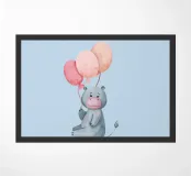 Adorable hippopotamus holding colorful balloons—a perfect touch of whimsy for your favorite products. This charming artwork can be added to mugs, shirts, notebooks, phone cases, posters, and towels. Make everyday items a bit more fun and joyful with this cute hippo design!