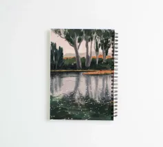 A quiet riverside scene where trees dance across the water in mirrored form. A lyrical landscape of balance and harmony.