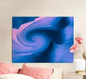 Abstract circular twisted pattern in blue and pink hahnemühle