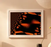Abstract dynamic fractal pattern orange and black hahnemühle