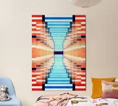 Abstract dynamic twisted pattern in blue and pink hahnemühle