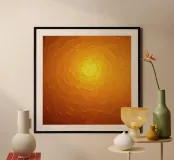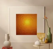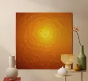 Warm hues of orange and yellow swirl together, creating a layered abstract pattern that evokes the feeling of sunlight. The design features intricate textures that draw the eye inward.