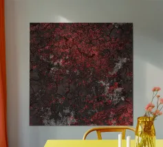Abstract texture with black and red paint splashes on a dark hahnemühle