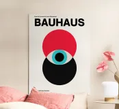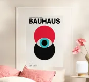 An iconic Bauhaus design with geometric circles in red, black and blue, inspired by the legendary Staatliche Bauhaus school. Abstract shapes, clean lines and minimalist style make this poster a timeless classic of modern art. Perfect for lovers of Bauhaus graphics, geometric art and retro posters. Ideal as a Bauhaus poster, abstract wall mural, mid-century modern print, retro art, modern design poster, home accessory and gift idea for design lovers.