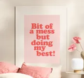 Bit of a Mess But Doing my Best Red Pink Typography Print hahnemühle